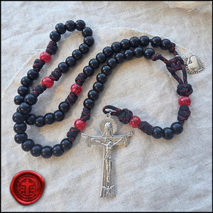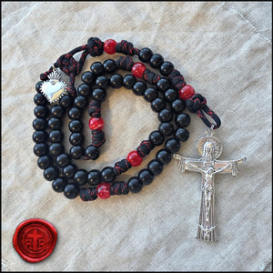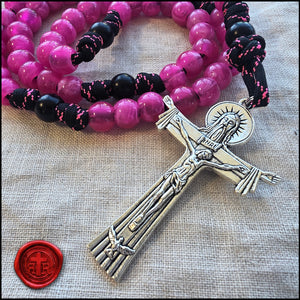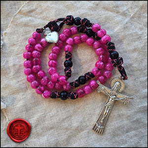 Happy Valentine's Day! Choose Pink or Black/Red or get 1 of each. The puffed shaped Sacred Heart Devotional Medal is included. Made of very strong military style paracord and quality beads.
