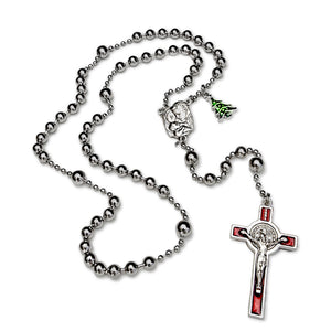 This beautiful Christmas Rosary is inspired by the Historical 1916 Combat Rosaries given to soldiers, sailors, and flying aces during WWI. This high-quality metal rosary will be cherished as a unique, lasting, and meaningful gift!