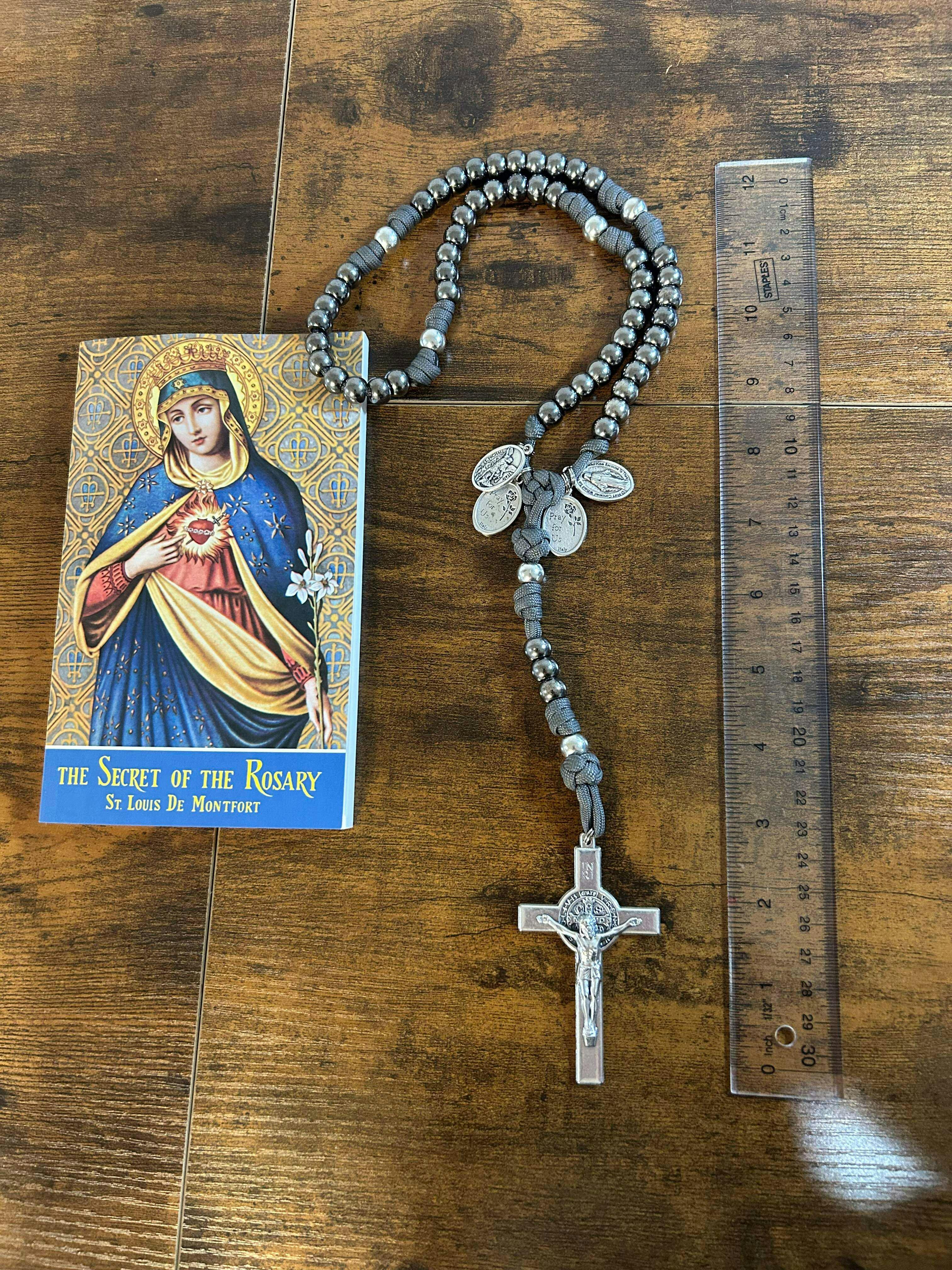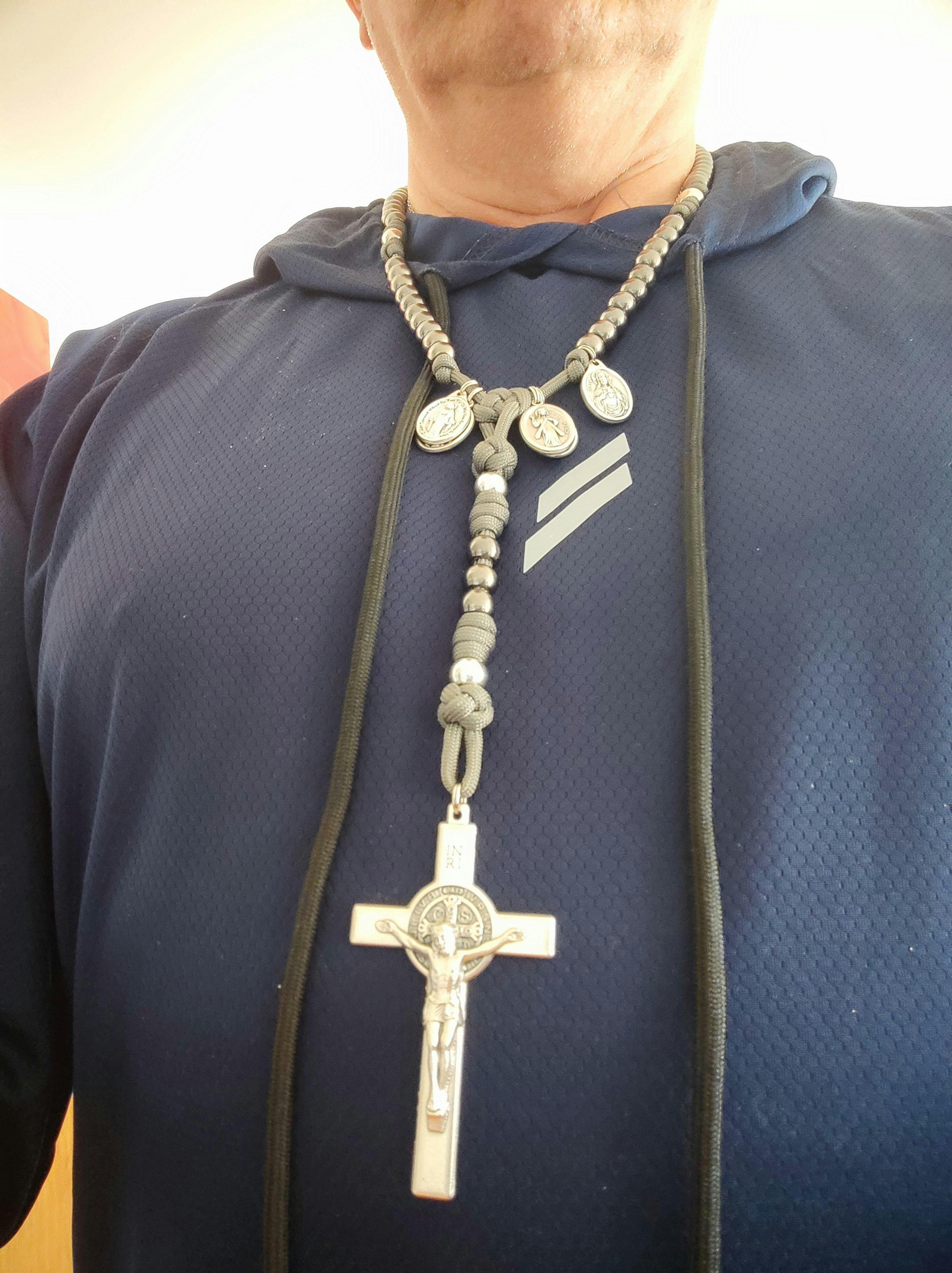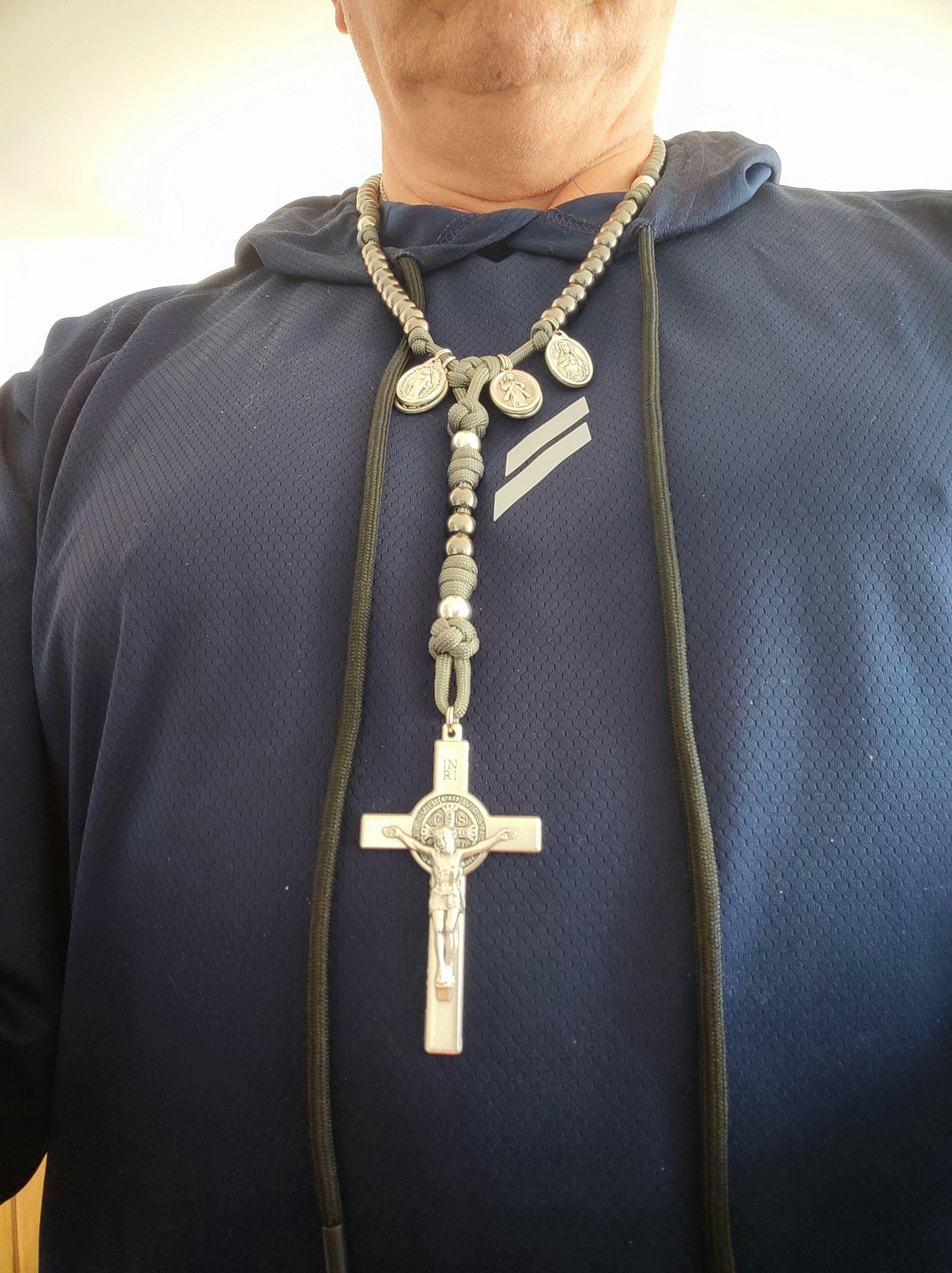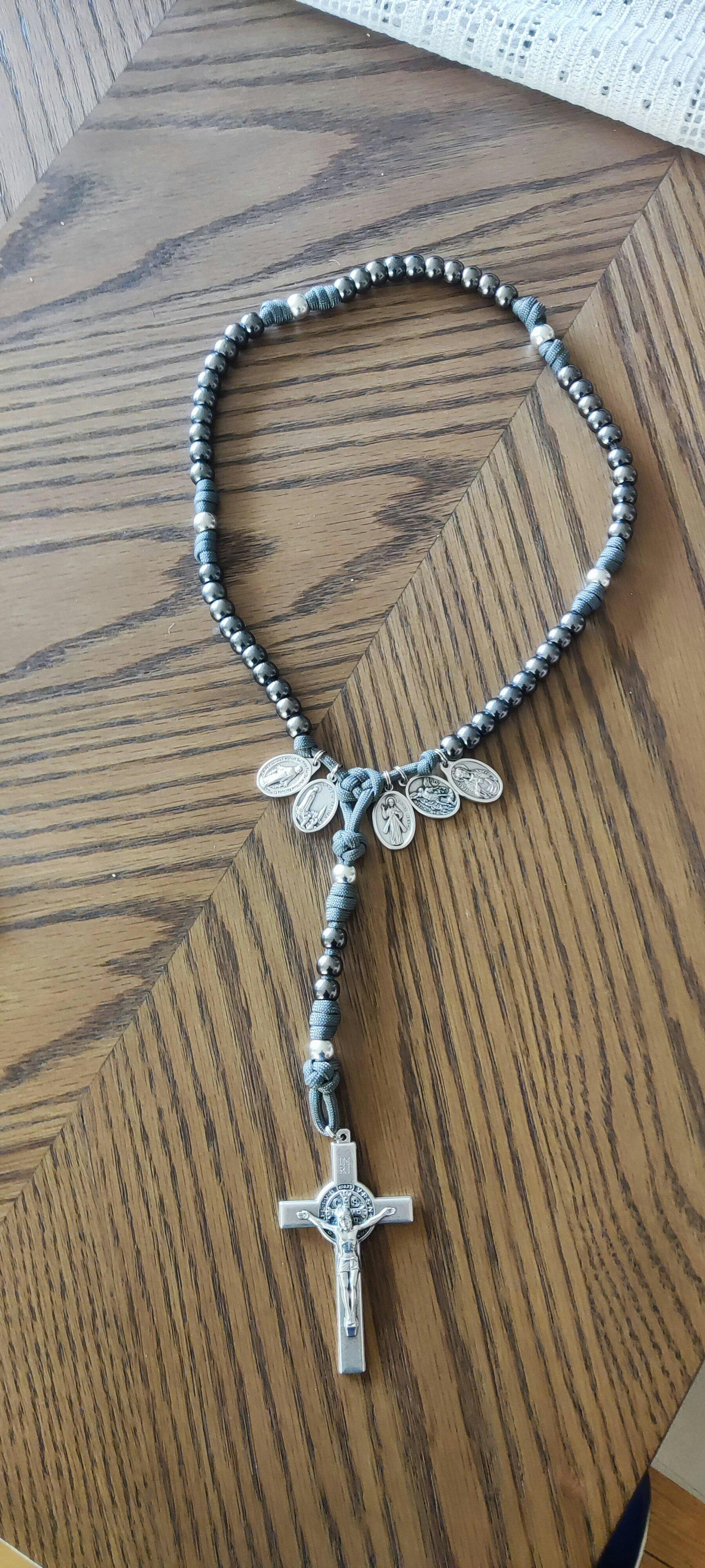 Strong, Heavy Duty, Paracord Rosary with solid Metal Beads.