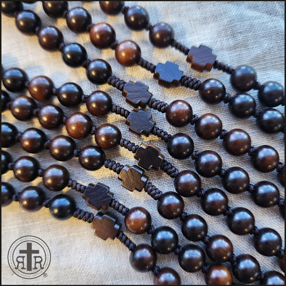 These are well made, quality, durable rosaries with a beautiful design made of superior jujube wood - Beautifully made in S. Korea - You will see and feel the quality and care. With a cross shaped Our Father bead, you never have to look to feel your way through the rosary.