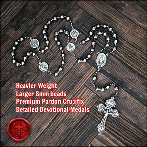 This compact all-metal rosary is rugged, functional, and portable. It has a meaningful history, as it is heavily inspired by the service combat rosaries issued by the government to soldiers, sailors, and flying aces during WWI. This new ultimate edition of the WWI Battle Beads collection features larger, heavier beads and sacred devotional Our Father medals. These beads have a wonderful heavier feel that you will love to pray with.
