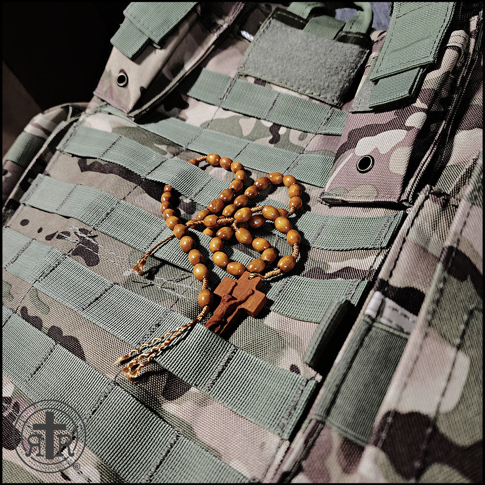 It began with a simple yet profound sight: a small, tangled, and frayed string rosary hanging from a soldier's backpack. The string was broken, but the spiritual strength it provided was unmistakable. This humble yet powerful symbol ignited our passion and faith: Coud we create a rosary that could withstand the harsh environment of the battlefield?