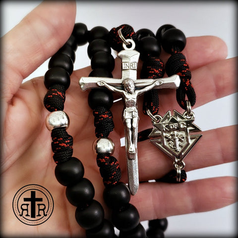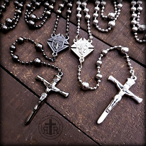 GREAT NEWS. As of February 2019, Rugged Rosaries is officially licensed as a rosary maker for the Knights of Columbus. Our customers demand KofC rosaries so we worked hard to be able to supply them for you. You can see our available Knights of Columbus rosaries which are ready to purchase right now at the Knights of Columbus Collection Page by clicking HERE.