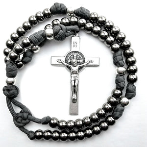 Strong, Heavy Duty, Paracord Rosary with solid Metal Beads.