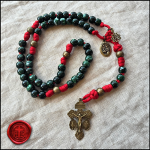 The lovely colors of Christmas are captured in this new, limited edition, handmade Christmas Rosary from Rugged Rosaries for 2025. We purposefully and prayerfully handmake these for you in our studio. It's our mission to supply the rosary you want and need, the rosary that will enhance your faith and your prayer life and your devotion to Our Lady for years to come.