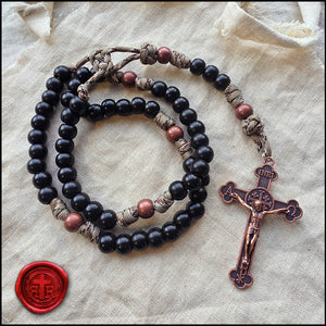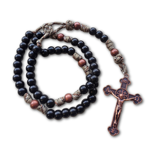 Inspired by 1990s Operation Desert Storm, this extra strong Catholic Rosary is distinguished by the military grade parachute cord in striking "rattlesnake" colors. Handmade for you in Texas.