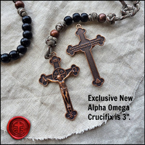 The beautiful Alpha Omega Crucifix is a standout feature of this best selling rosary. This durable rosary could be attached to your gear with a carabiner or stored in a pocket of your pack and it would be fine. This is an outstanding gift for military friends, first responders, outdoorsmen, or anyone that needs a rosary that can withstand even the harshest of environments.